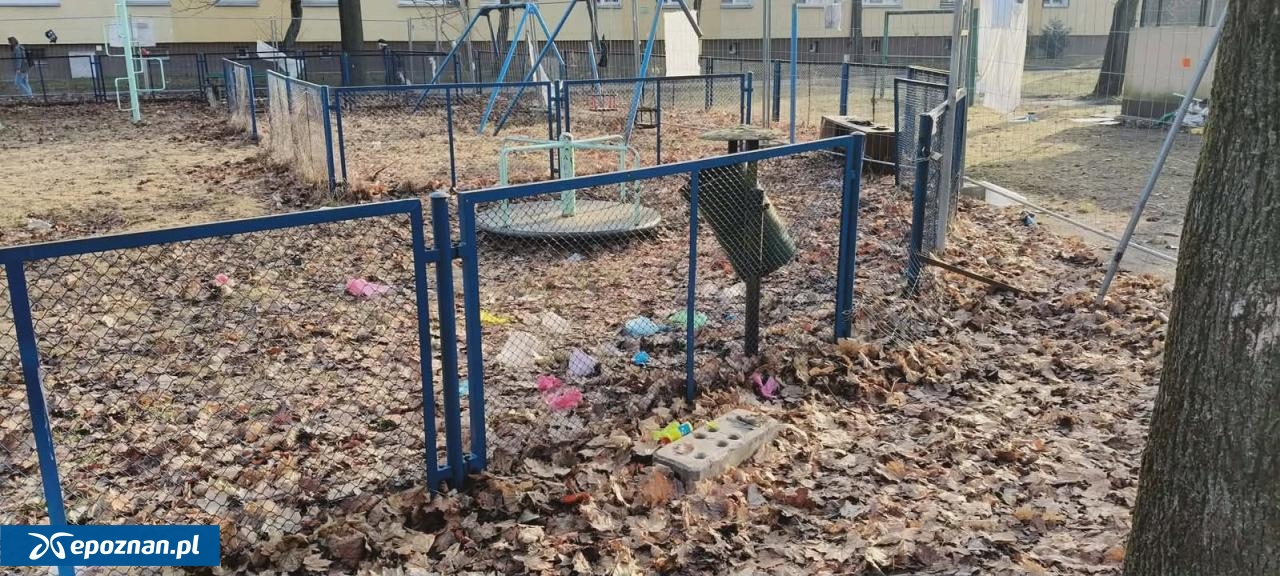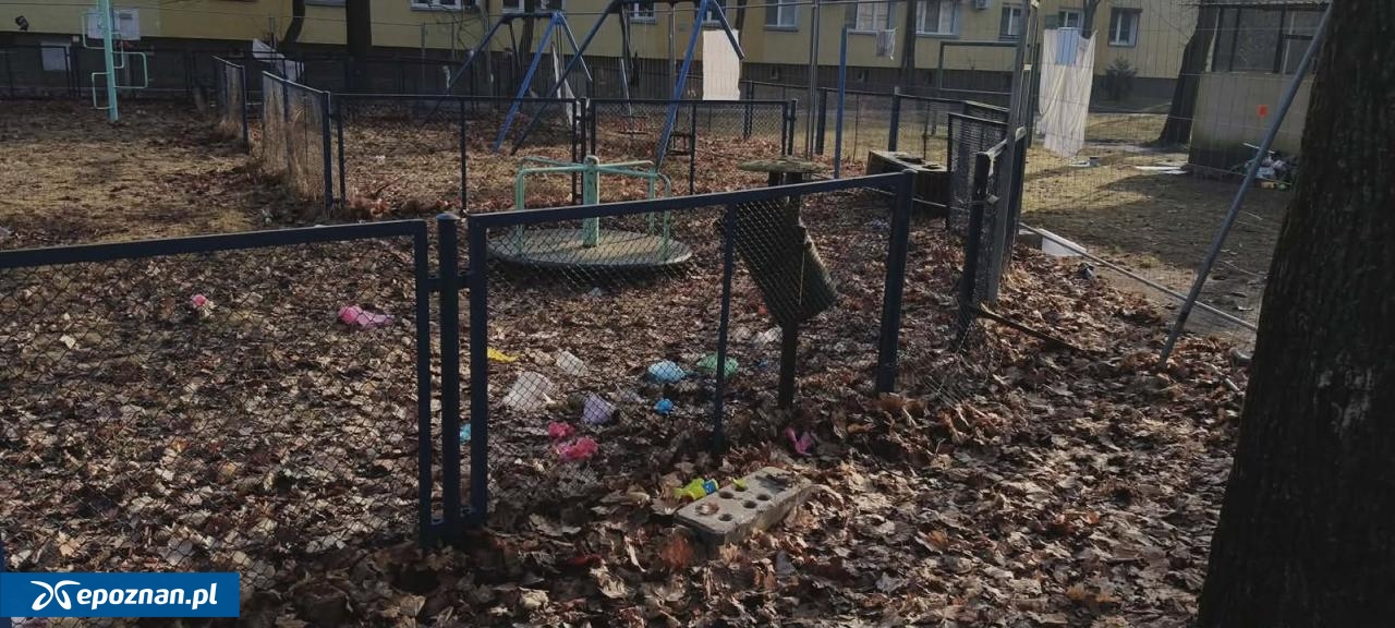 Śmietnisko na ogrodzonym przez właścicieli placu zabaw na Winogradach. Mieszkanka domaga się sprzątania