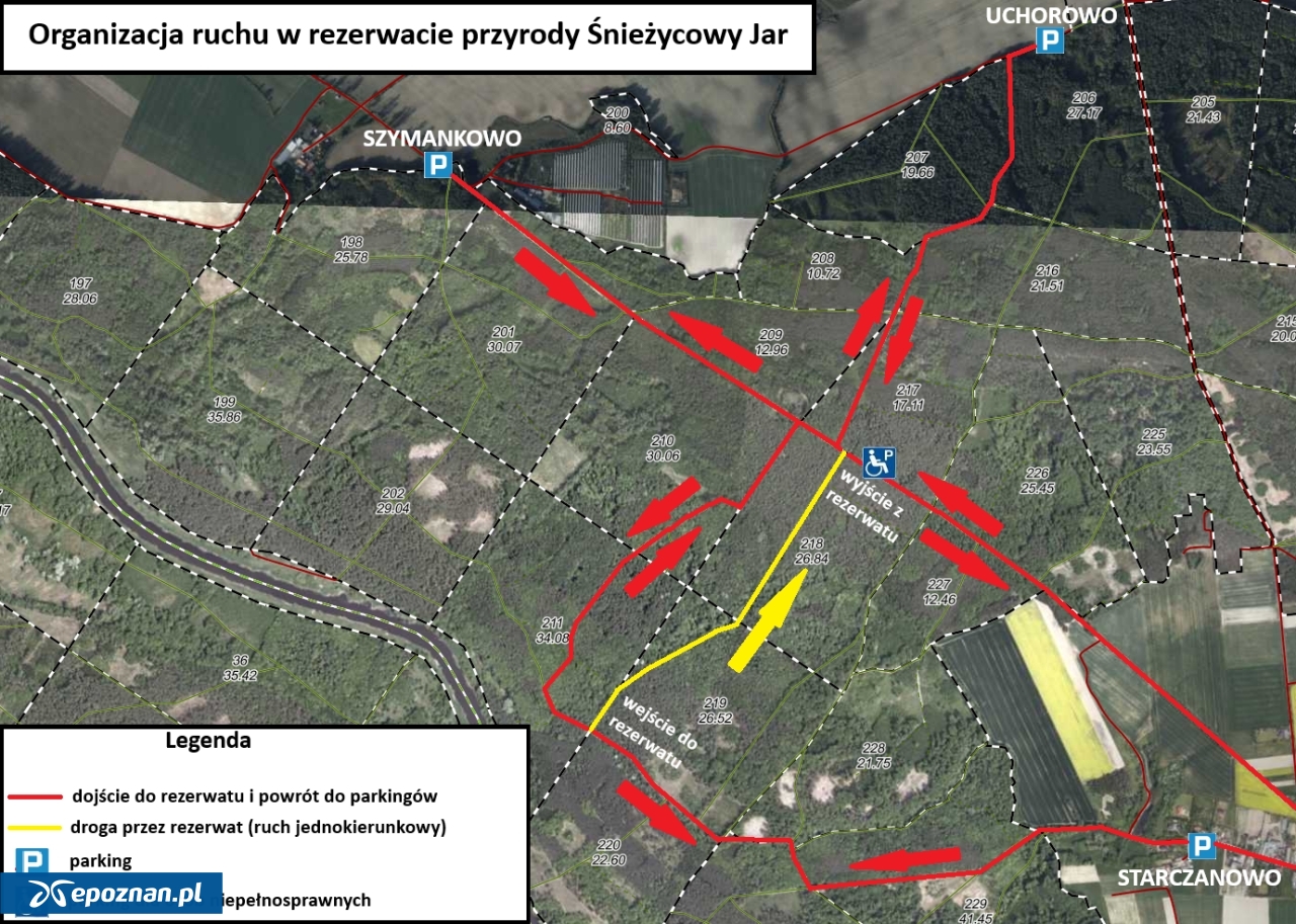 - Bazując na doświadczeniach z lat ubiegłych oraz pozytywnym odbiorze ruchu jednokierunkowego w rezerwacie przez turystów, wprowadzamy go również w obecnym roku. Ruch jednokierunkowy dotyczy przejścia przez rezerwat i kładkę - spacerujemy od południa w stronę północną. Ruch jednostronny pozwala Państwu na odwiedzenie większej ilości miejsc w lesie, zaobserwowanie innych, ciekawych przyrodniczo obszarów oraz podejrzenie sposobów prowadzenia gospodarki leśnej przez nadleśnictwo. Przede wszystkim zapewnia to komfort poruszania się w rezerwacie i na kładce, zwłaszcza dla osób, którym trudniej jest poruszać się po terenie leśnym (potrzebują z różnych względów więcej miejsca), najmłodszych turystów obserwujących przyrodę z wózków spacerowych oraz dla rowerzystów prowadzących swoje rowery - zaznacza nadleśnictwo.