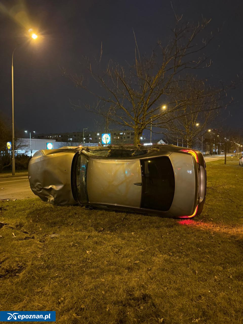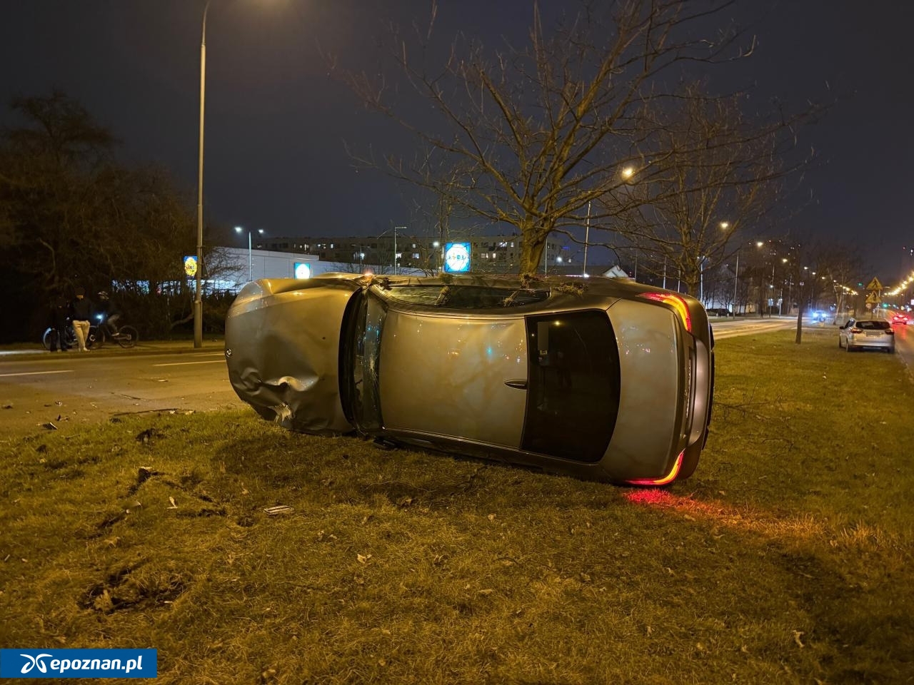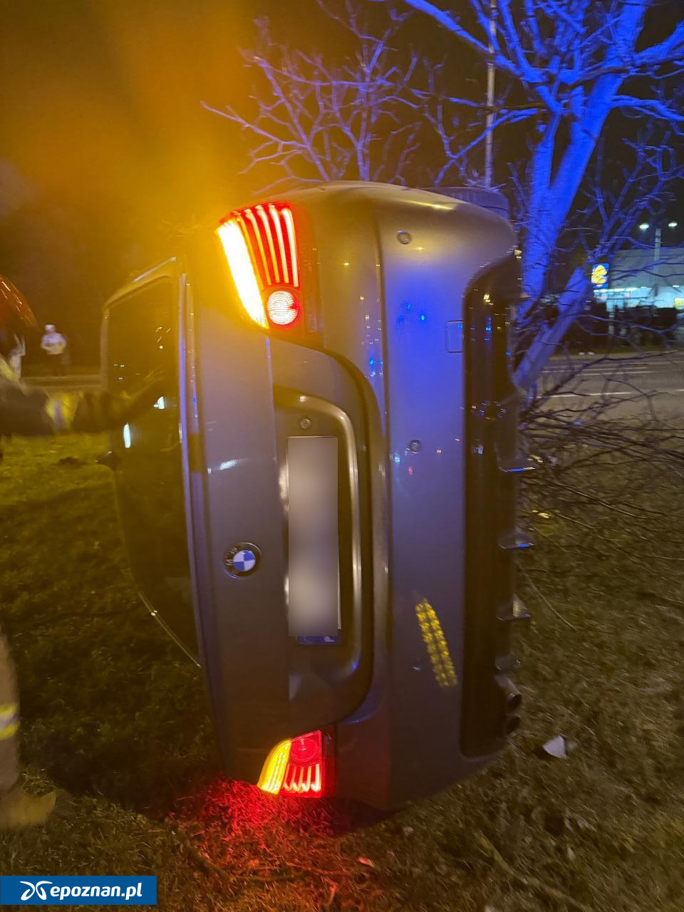 Wypadek w Poznaniu. BMW leży na boku
