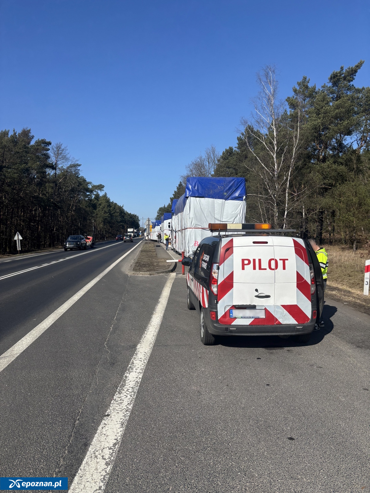 Na drodze krajowej nr 10 inspektorzy z oddziału WITD w Pile zatrzymali kolumnę trzech pojazdów nienormatywnych. Przejazd był pilotowany przez dwóch pilotów.