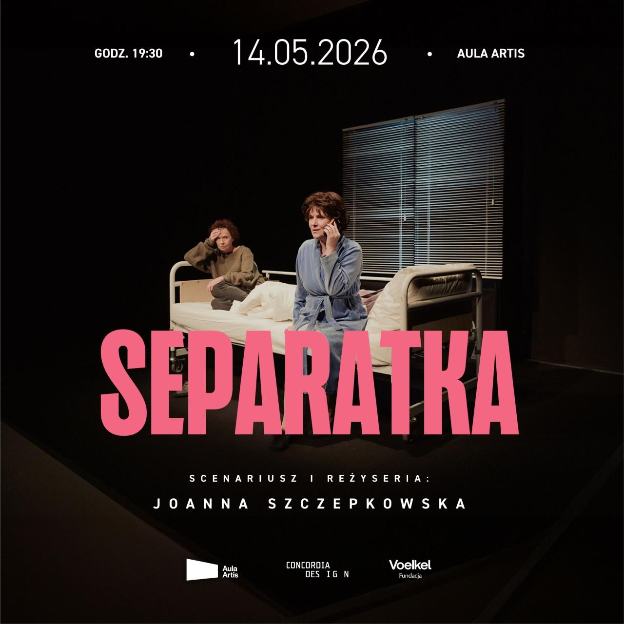 14 maja na deskach Auli Artis wystawiony zostanie kolejny spektakl organizowany przez Concordia Design. "Separatka" to błyskotliwa komedia autorstwa i w reżyserii Joanny Szczepkowskiej, która pod lekką formą przemyca przenikliwą prawdę o naszej rzeczywistości. - Ten spektakl z kolei to historia o starciu dwóch zupełnie skrajnych kobiecych osobowości. Los zamyka je w tej samej, ciasnej sali szpitalnej i nagle zaczyna się walka o terytorium. Z jednej strony mamy komediowe pomyłki, z drugiej - ogromne napięcie, bo obie kobiety mają silne charaktery - wspomina Joanna Guderczyk, Head of Events, Concordia Design.