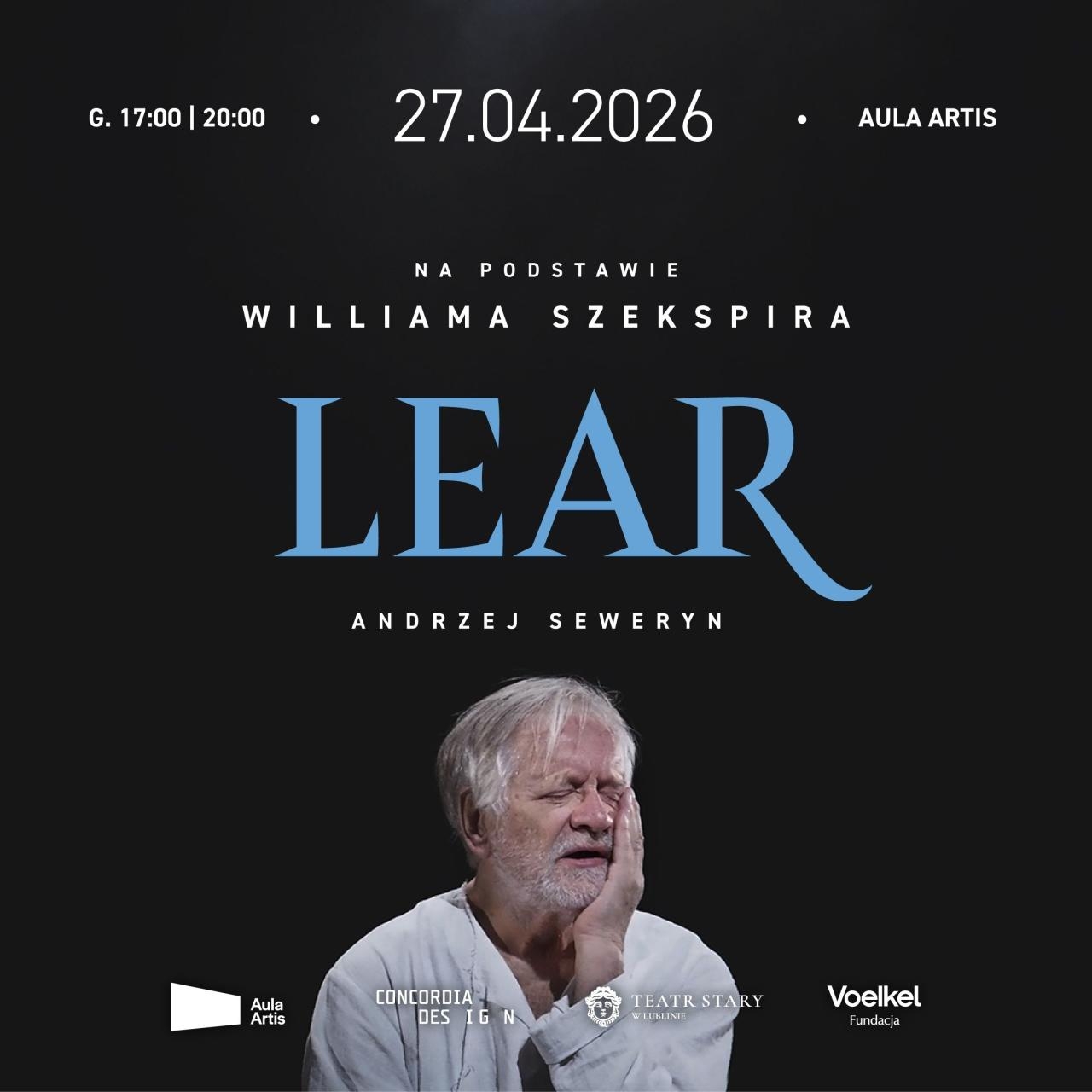 27 kwietnia w Auli Artis wystąpi Andrzej Seweryn w kameralnym monodramie "Lear" reżyserii Janusza Opryńskiego. To kolejny spektakl organizowany przez Concordia Design tym razem we współpracy z Teatrem Starym w Lublinie.