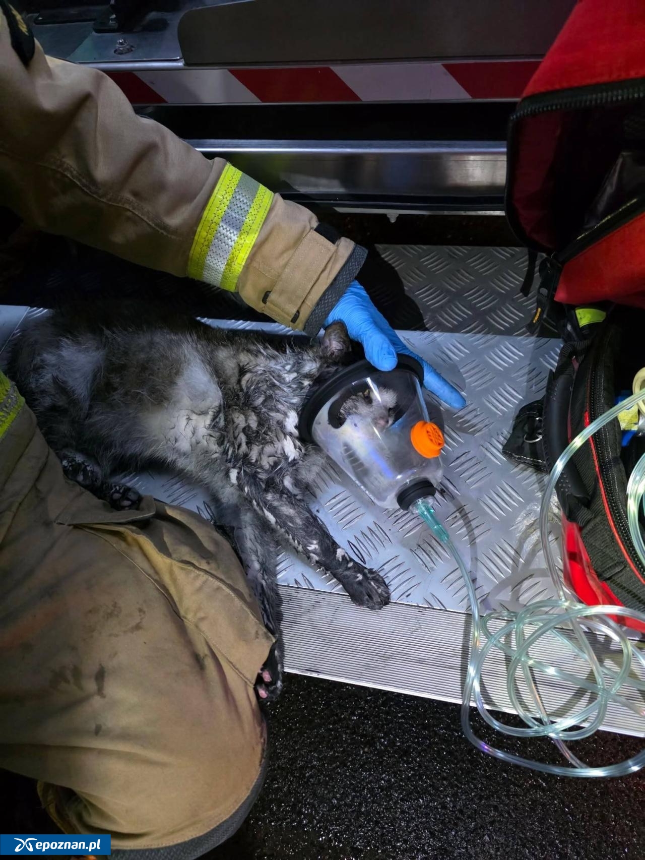 Dzięki szybkiej reakcji strażaków udało się uratować kota z zadymionego mieszkania. Strażacy z Komendy Powiatowej Państwowej Straży Pożarnej w Kościanie udzielili mu pomocy przy użyciu specjalistycznego sprzętu, a po podaniu tlenu zwierzę odzyskało siły.