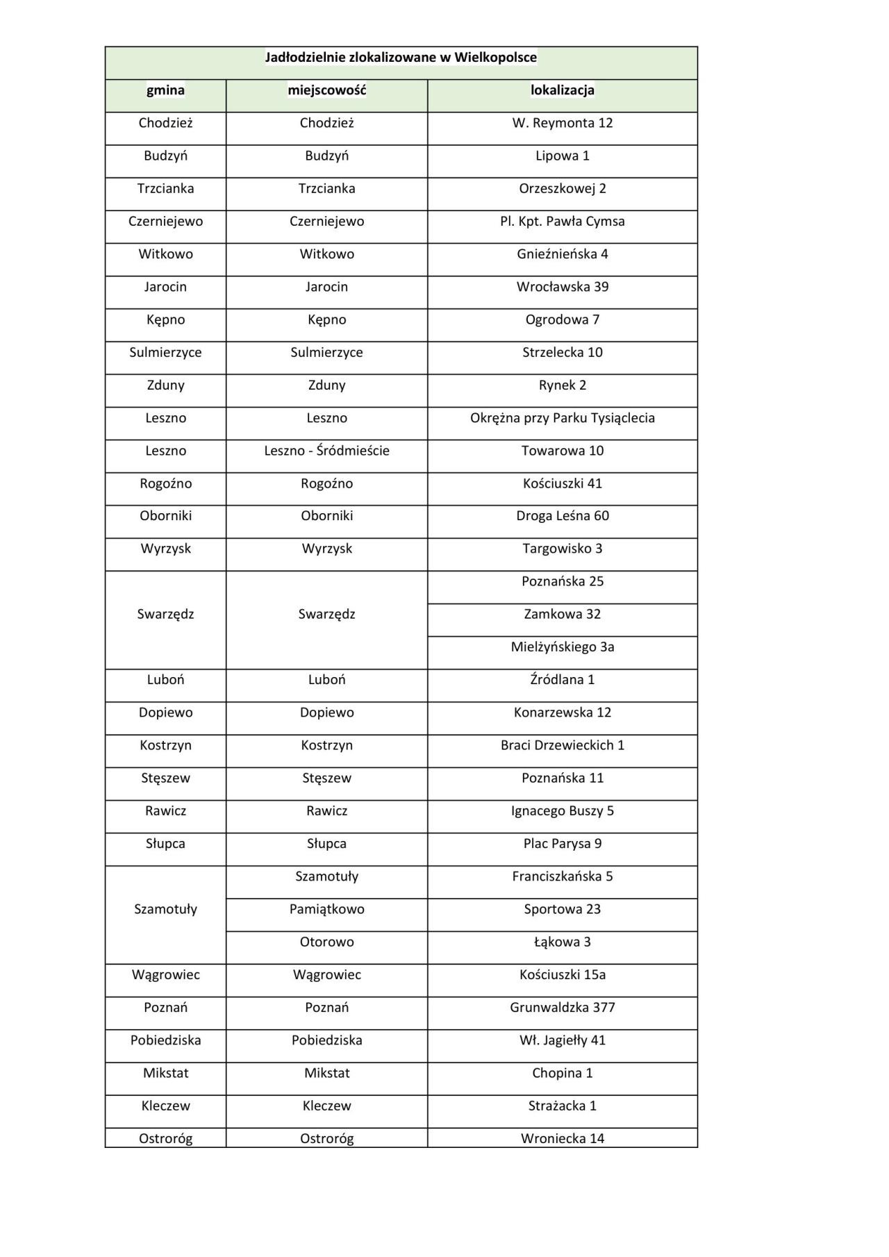 Korzystając z jadłodzielni, mieszkańcy aktywnie włączają się w realizowany przez Samorząd Województwa Wielkopolskiego "Program ograniczania marnotrawstwu i strat żywności w Wielkopolsce", który ma na celu promowanie postaw "zero waste" i uczy szacunku do jedzenia. Poniżej w galerii lista jadłodzielni powstałych w ramach konkursu dotacyjnego "Wielkopolskie Jadłodzielnie", dostępna również pod adresem: https://www.umww.pl/wielkopolskie-jadlodzielnie.