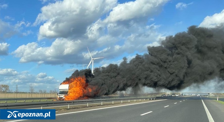 W poniedziałek, między węzłami Buk i Nowy Tomyśl, doszło do pożaru samochodu.