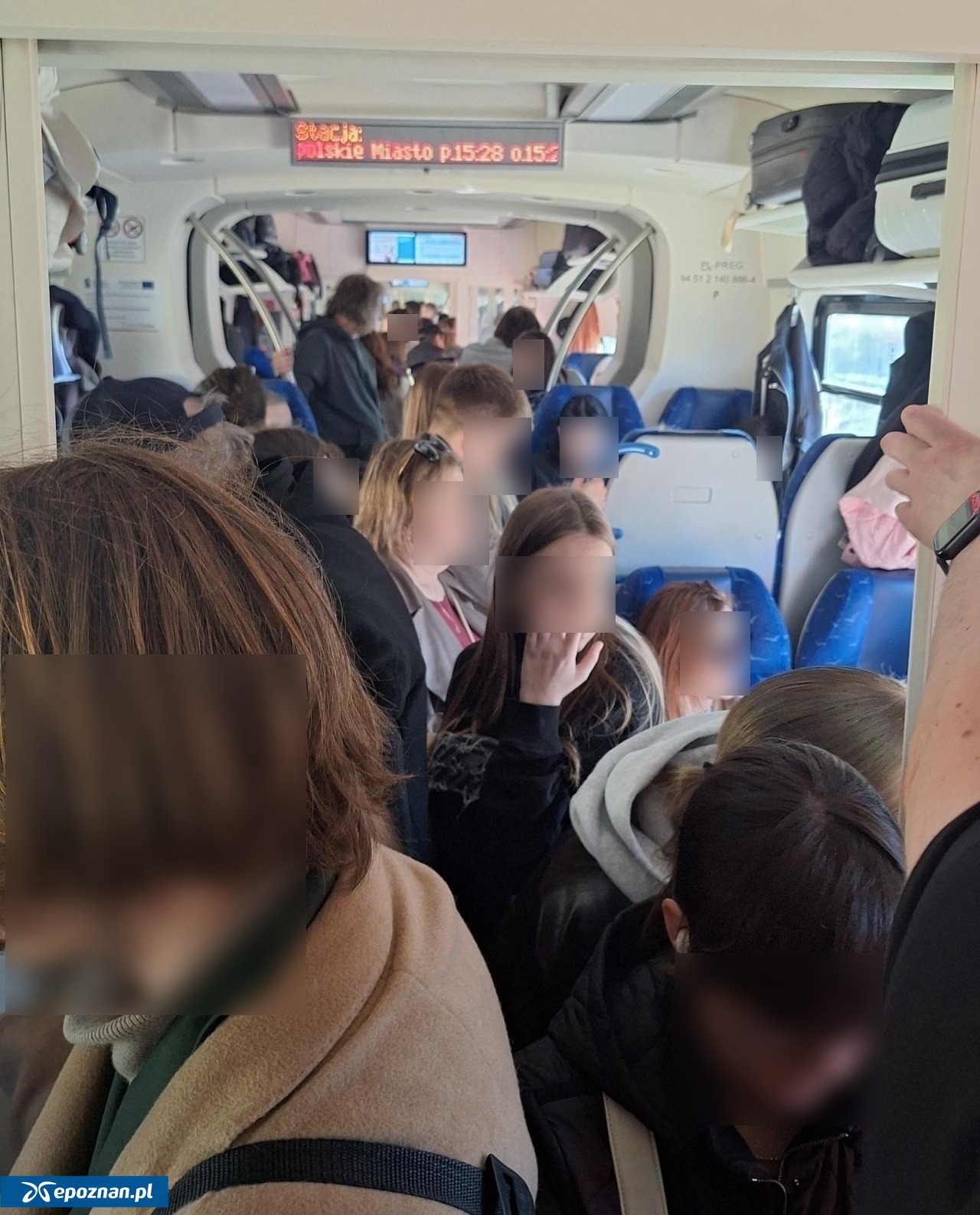 Pasażerowie pociągu relacji Kołobrzeg-Poznań jadą ściśnięci jak sardynki w puszce. "Trzymam się innych pasażerów, bo nie ma czego."