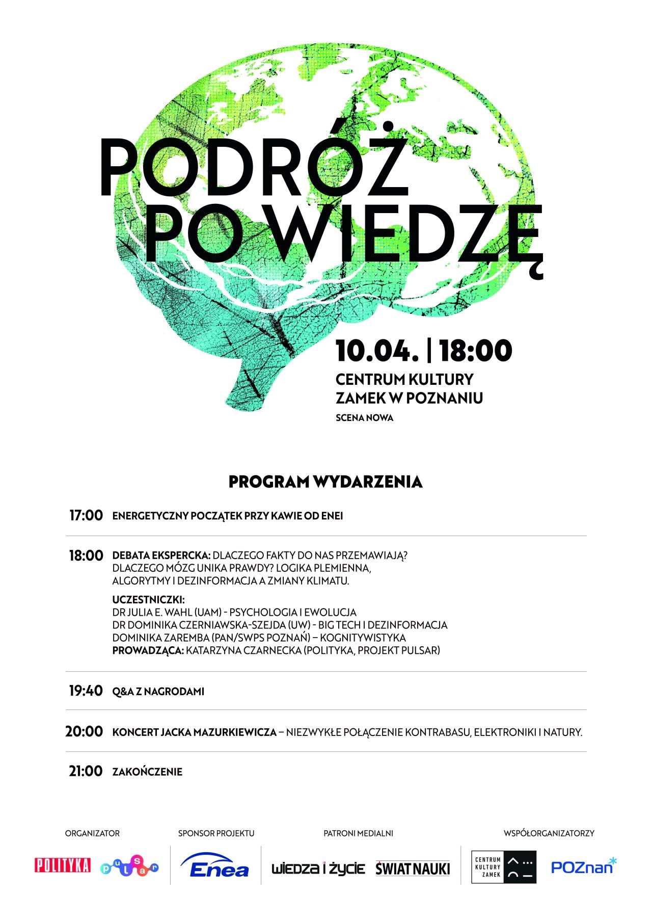 Centralnym punktem poznańskiego spotkania będzie dyskusja pt. "Dlaczego fakty do nas nie przemawiają?" - temat szczególnie aktualny w kontekście wyzwań klimatycznych i roli informacji we współczesnym świecie. Rozmowę poprowadzi Katarzyna Czarnecka, wicenaczelna "Pulsara" - portalu popularnonaukowego "Polityki".