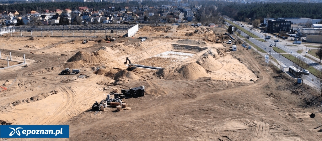 BIG Piła powstaje przy Alei Wojska Polskiego w Pile, w sąsiedztwie lotniska. Jesienią 2025 roku ruszyły prace budowlane. Najpierw wycinano drzewa z terenu, teraz prace są już zdecydowanie bardziej zaawansowane, co widać na zdjęciu z lotu ptaka.