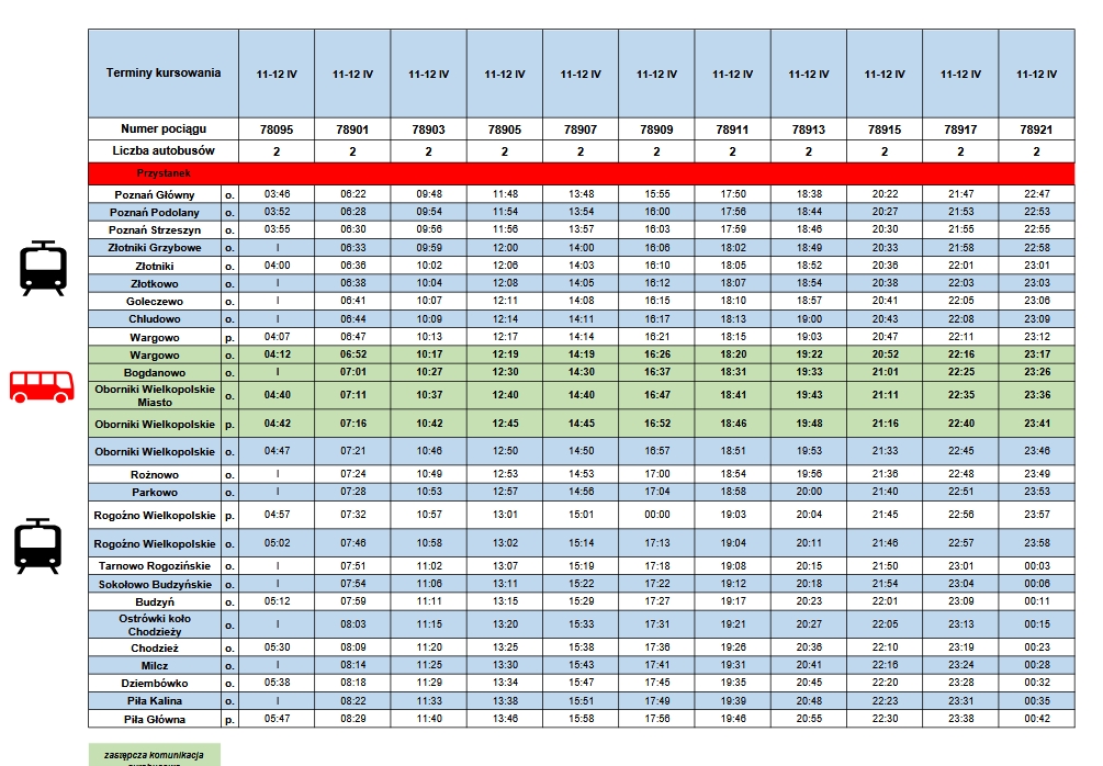 W weekend kursuje komunikacja zastępcza na trasie Wargowo - Oborniki.