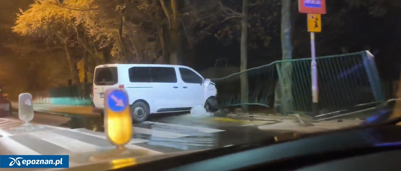 Woda lała się na ulicy w Poznaniu. Kierowca nie zapanował nad samochodem