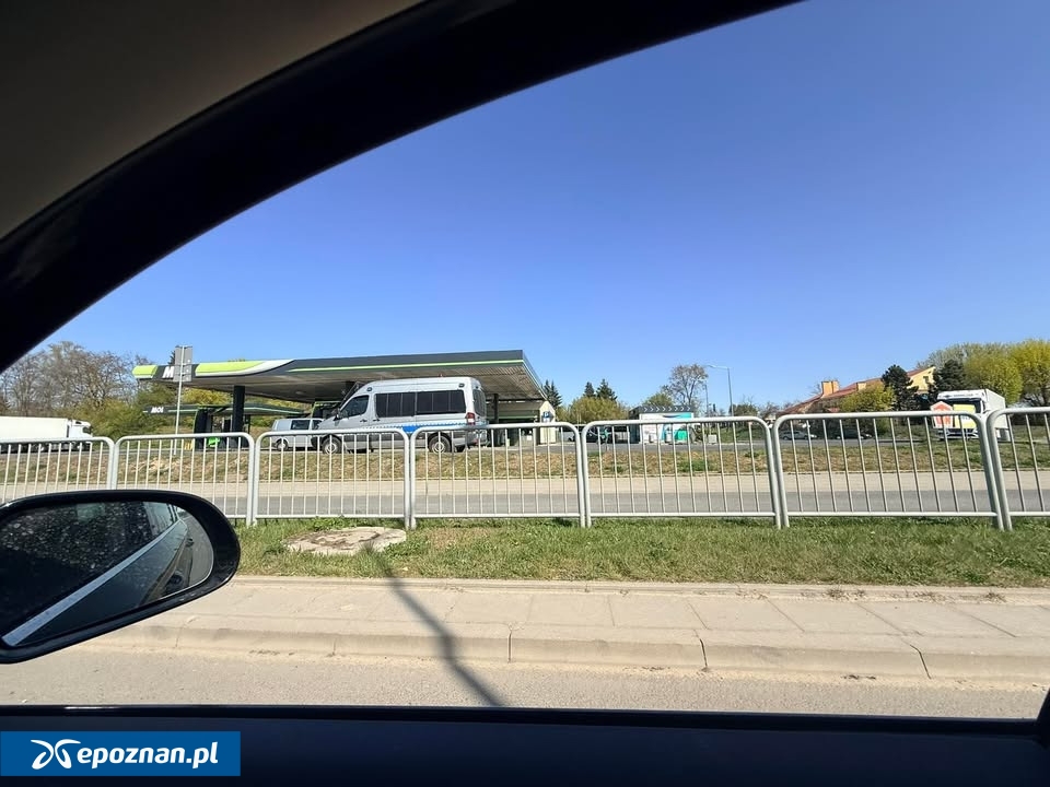 Policyjny radiowóz od tygodnia stoi przy jednej z poznańskich stacji benzynowych. "Stały, całodobowy dyżur?"