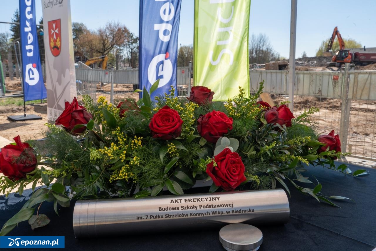 W Biedrusku odbyła się dziś uroczystość wmurowania kamienia węgielnego pod budowę szkoły podstawowej wraz z halą sportową. "To ważny moment dla lokalnej społeczności - nowy obiekt będzie mógł przyjąć 600 uczniów i stworzy nowoczesne warunki do nauki, rozwoju i integracji" - informują urzędnicy z Gminy Suchy Las.