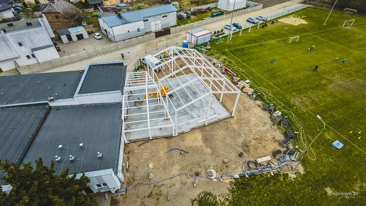 Trwa rozbudowa strażnicy OSP Palędzie. "Widać już konstrukcję budynku, w którym znajdą się dwa stanowiska dla samochodów pożarniczych oraz nowy magazyn. Planowane zakończenie prac przewidziane jest na sierpień tego roku"- informują urzędnicy z Dopiewa.