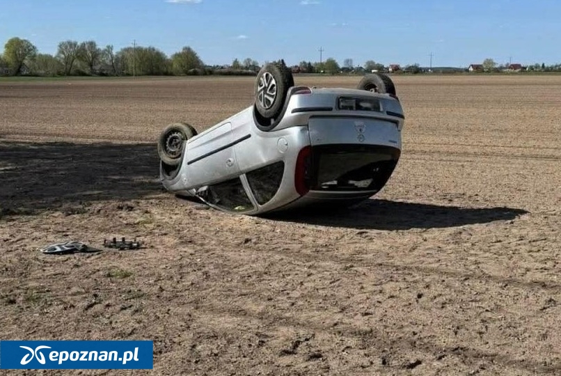 Wypadek w powiecie poznańskim. Samochód dachował, jedna osoba trafiła do szpitala