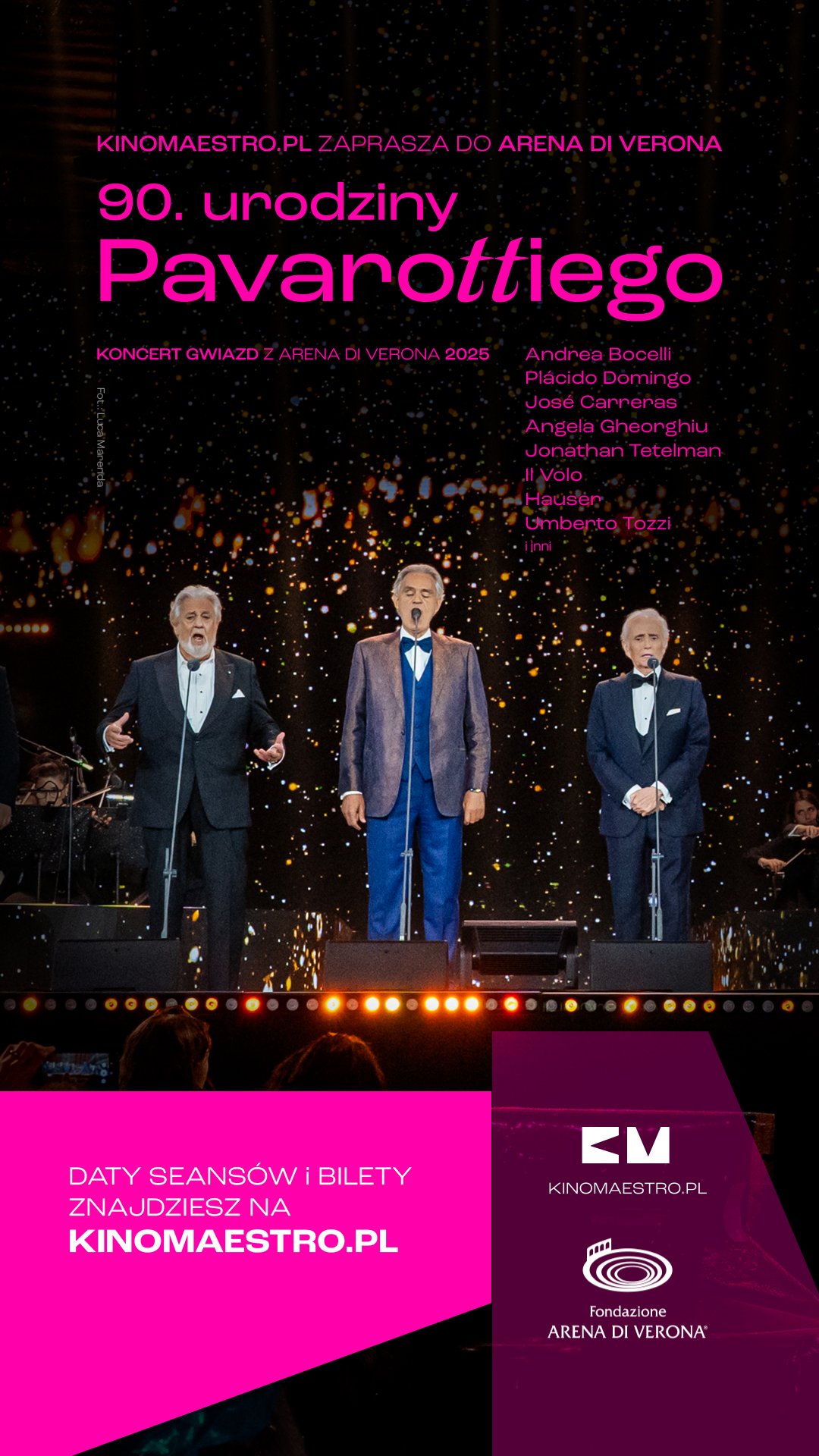 W maju na ekranie Rialto zagości wyjątkowe wydarzenie muzyczne - retransmisja koncertu z 2025 roku poświęconego pamięci jednego z najwybitniejszych tenorów XX wieku, Luciana Pavarottiego. To propozycja nie tylko dla fanów opery, ale dla wszystkich, którzy cenią sobie muzykę na najwyższym poziomie i artystów z prawdziwą charyzmą. Na scenie zobaczymy prawdziwą plejadę gwiazd. Wśród nich Andrea Bocelli, IL VOLO, Vittorio Grigolo, a także dwaj legendarni członkowie Trzech Tenorów - Placido Domingo oraz Jose Carreras. Towarzyszyć im będzie wybitna rumuńska sopranistka Angela Gheorghiu oraz Jonathan Tetelman - 38-letni tenor, który dziś uchodzi za jedno z najgorętszych nazwisk światowej sceny operowej. Koncert stanowi hołd dla artysty, którego głos poruszał miliony słuchaczy na całym świecie. Dzięki retransmisji widzowie będą mogli ponownie przeżyć najpiękniejsze momenty tego jubileuszu, usłyszeć ponadczasowe arie i przeboje oraz poczuć atmosferę wydarzenia, które łączy pokolenia.
