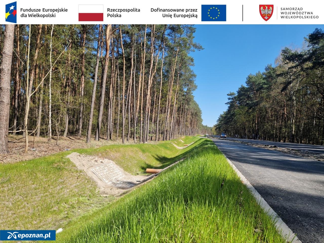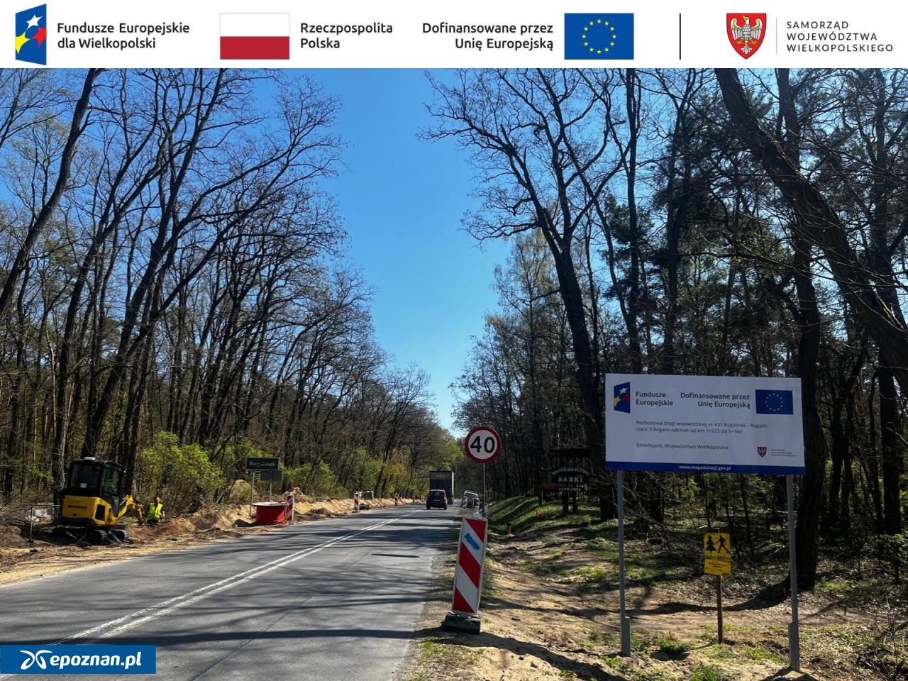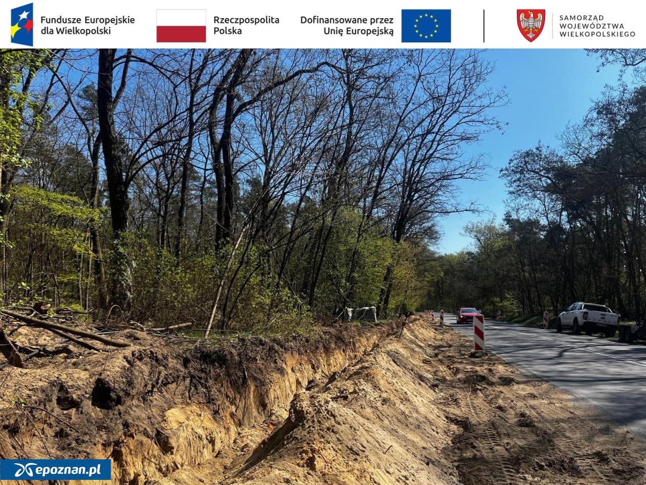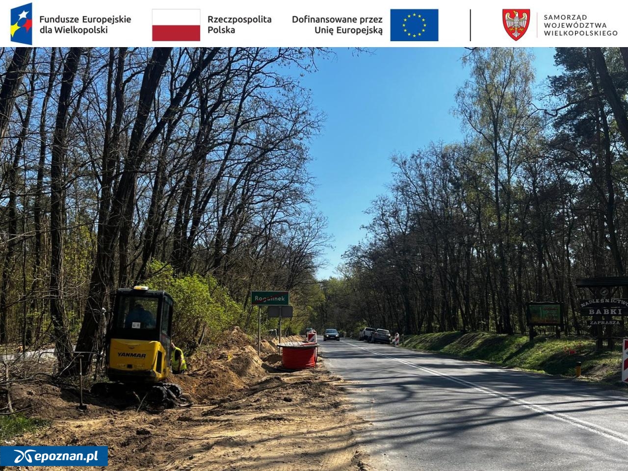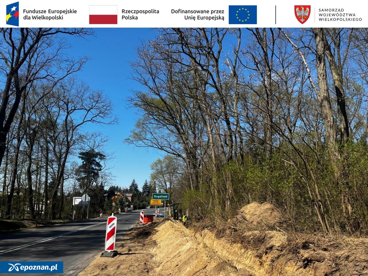 Na odcinku Rogalinek - Rogalin prowadzone są prace związane z usuwaniem kolizji z infrastrukturą liniową oraz przygotowaniem terenu pod budowę drogi dla rowerów i rozbudowę jezdni.