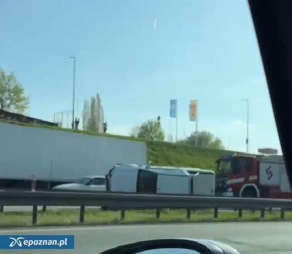 Utrudnienia na poznańskim odcinku A2! Samochód leży na boku