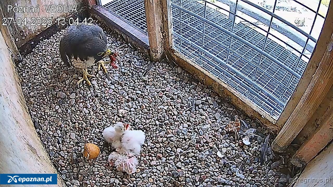 Tym razem Velio ma nową partnerkę. I właśnie wykluły się im trzy pisklęta. Ich życie można podglądać dzięki kamerom zamontowanym na kominie. Obecność sokołów to efekt współpracy ze Stowarzyszeniem Na Rzecz Dzikich Zwierząt Sokół oraz Veolią. Transmisja dostępna jest pod tym adresem: https://www.peregrinus.pl/pl/poznan