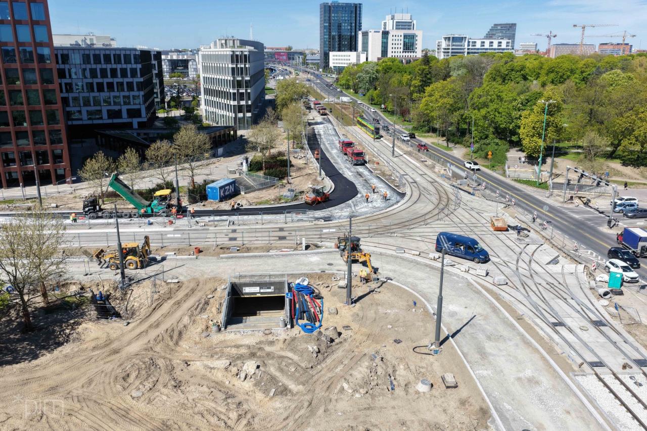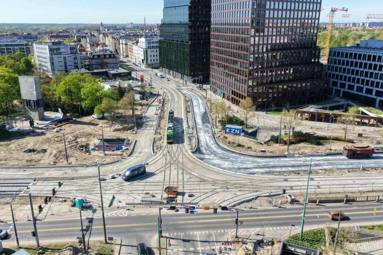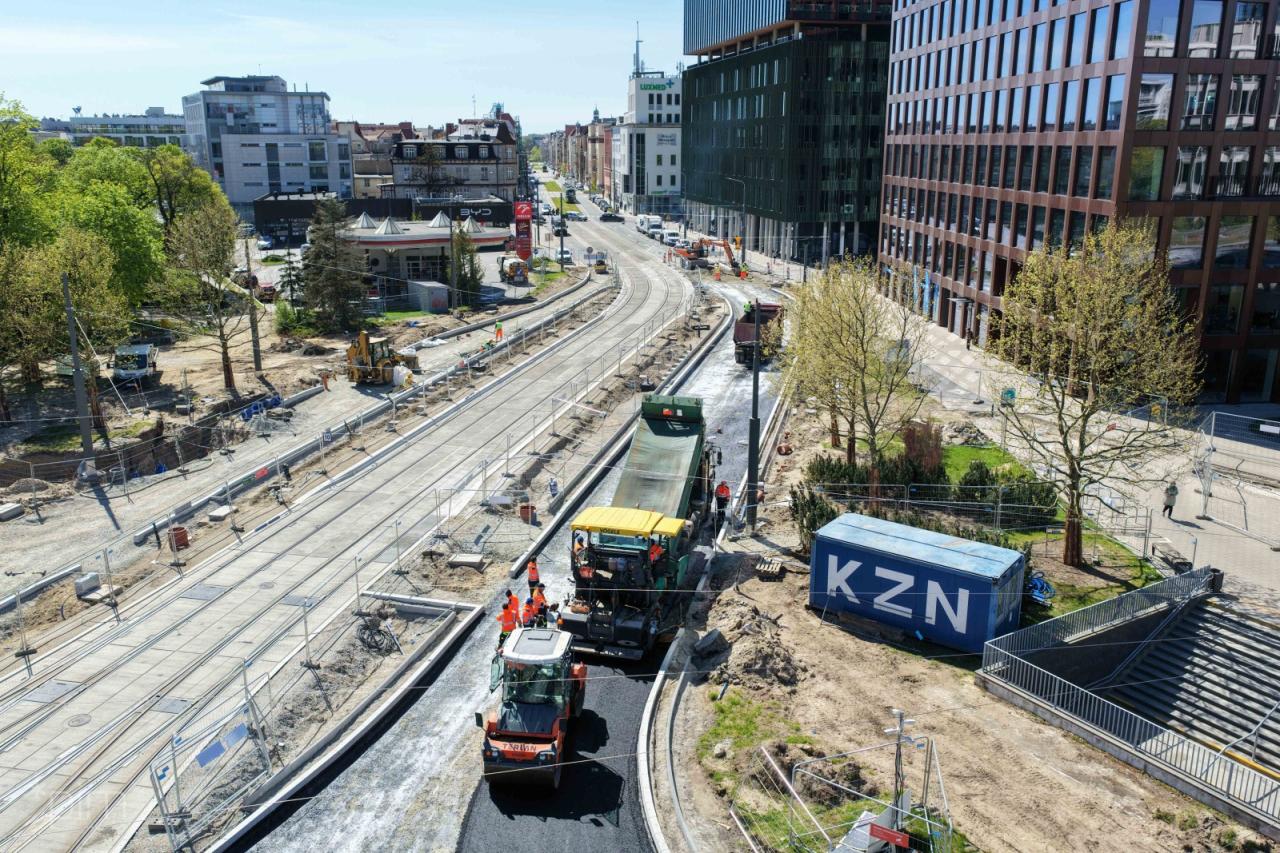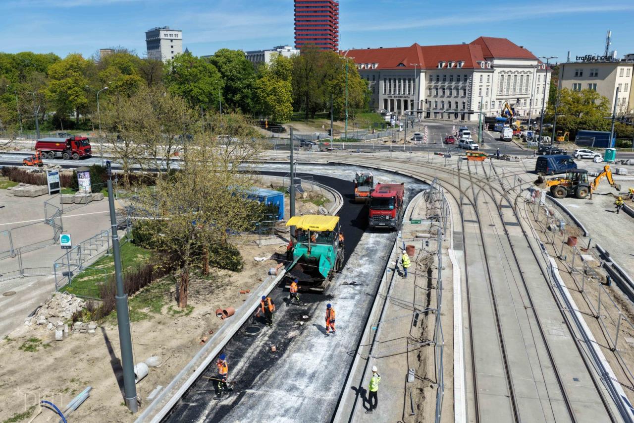 "Inwestycja realizowana jest kompleksowo, dlatego razem z trasą tramwajową zmienia się pozostała infrastruktura, w tym jezdnie dla samochodów. We wtorek rozpoczęło się układanie masy bitumicznej na południowej stronie skrzyżowania przy Nowym Rynku, w pierwszej kolejności na jezdni ul. Matyi i ul. Wierzbięcice. Coraz bardziej zaawansowane są też prace w zakresie infrastruktury podziemnej" - mówi Tomasz Płóciniczak, wiceprezes spółki Poznańskie Inwestycje Miejskie.