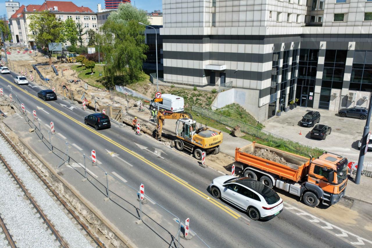 Obecnie roboty koncentrują się na węźle oraz fragmencie ulicy między ul. Św. Marcin a ul. Ogrodową.