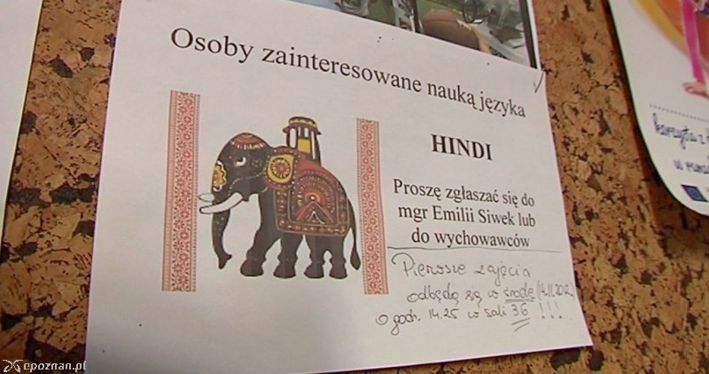 Gimnazjaliści z Zespołu Szkół nr 2 w Krzesinach od dwóch miesięcy uczą się języka hindi. Jest to pierwsza szkoła w Polsce, które prowadzi takie zajęcia. - Zainteresowanie wschodem i kulturą wschodu wśród młodzieży jest dość duże - mówi Andrzej Karaś, dyrektor szkoły. - Zaczynało naukę uczniów 13, obecnie jest ich 16. Język ma więc progresję rozwojową - dodaje.
