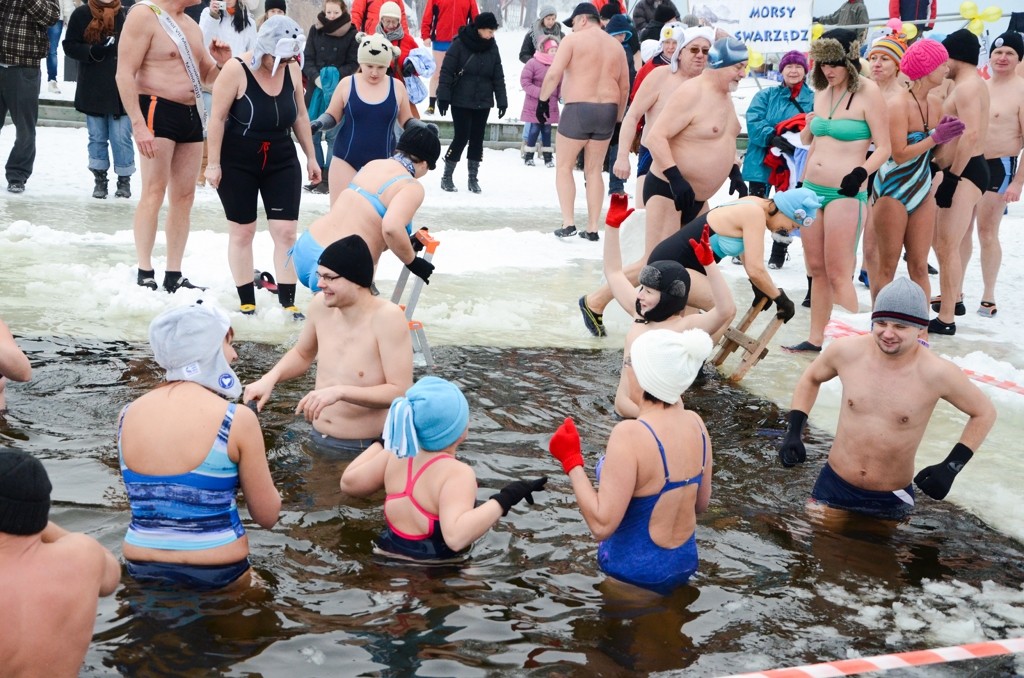 Swarzędzkie Morsy, których jest blisko 70 z okazji 10 urodzin spotkały się nad Jeziorem Swarzędzkim na wspólnym "morsowaniu". Zobacz zdjęcia.