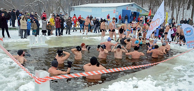 Obchody 10 urodzin Stowarzyszenia Morsy Swarzędz rozpoczęły się na Rynku w Swarzędzu wspólnym przemarszem ulicami miasta nad Jezioro Swarzędzkie. Dokładnie w samo południe rozpoczęło się wspólne morsowanie.