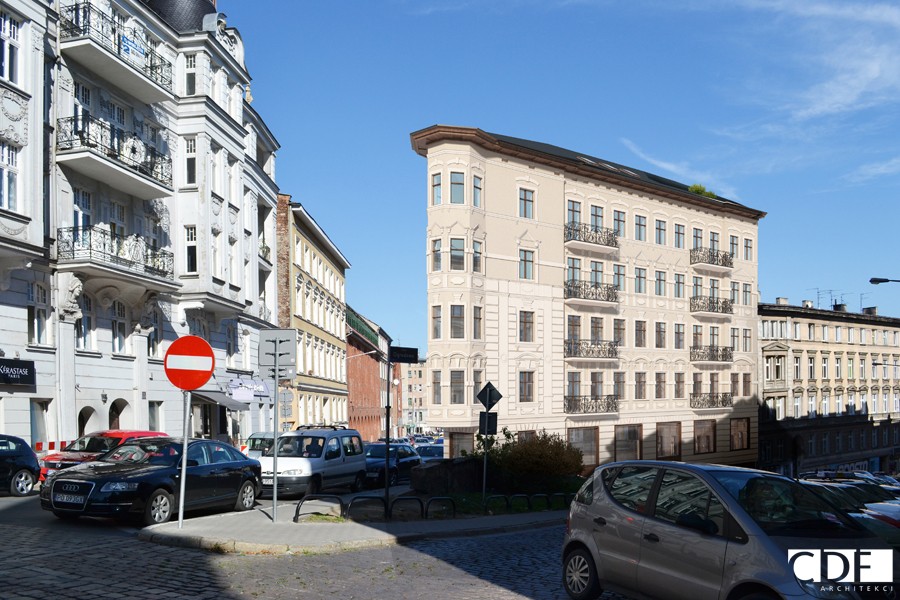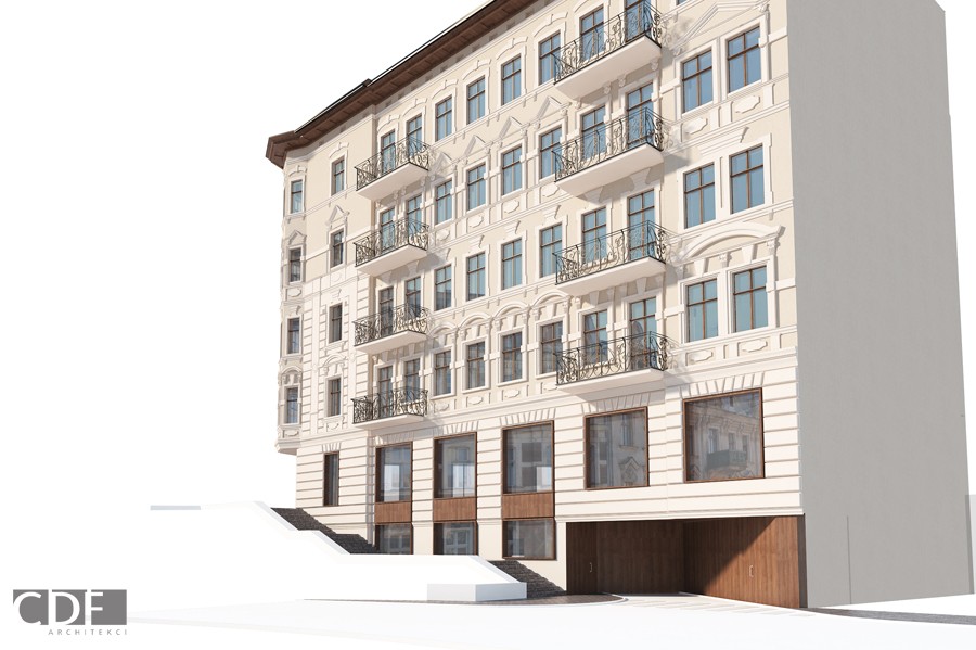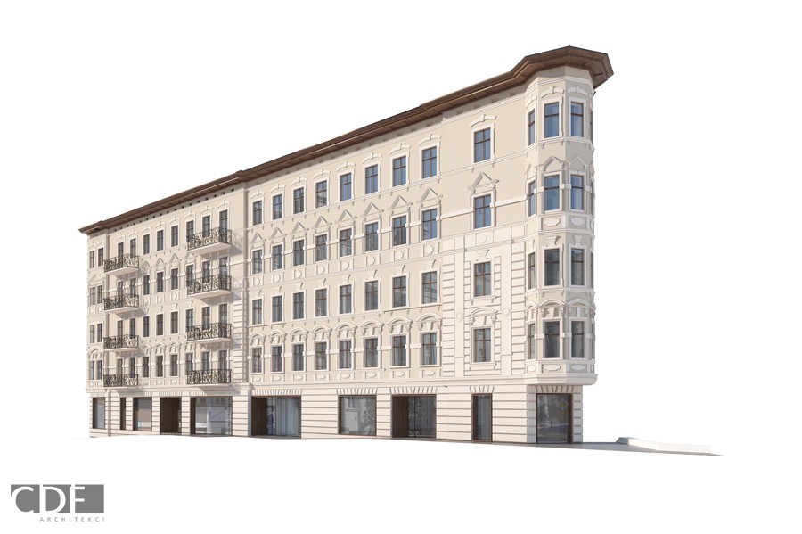 Nowa kamienica ma mieć wiernie zrekonstruowaną elewację zabytkowego obiektu. - Uwzględnione zostaną konieczne zmiany w strefie przyziemia, wynikające z wprowadzenia nowych funkcji - handlowej w parterze oraz parkingu na kondygnacjach podziemnych. Nowe skrzydło budynku, wzdłuż ulicy Krysiewicza, stanowi stylistyczną kontynuację dawnej zabudowy o identycznym detalu i artykulacji otworów okiennych - dodano w opisie.