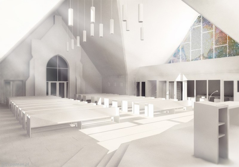 - Projekt przygotowaliśmy w 2012 roku. Zwróciła się do nas rada parafii - wyjaśnia Wojciech Krawczuk z Front Architects. - Pojawiły się pewne wytyczne, które musieliśmy spełnić przygotowując projekt. Trzeba go było również konsultować z Powiatowym Konserwatorem Zabytków - dodaje.
