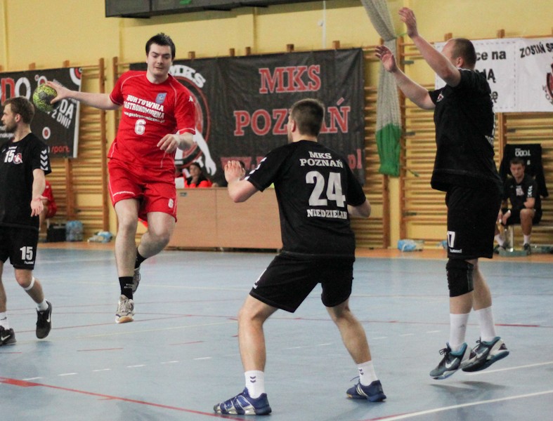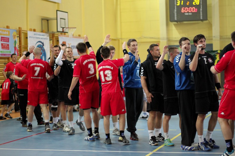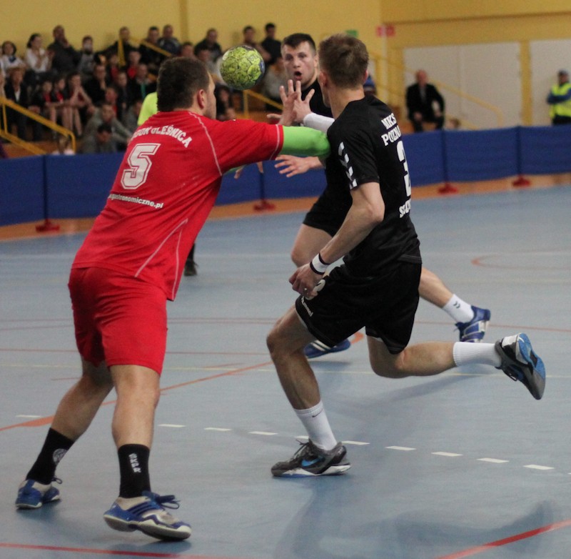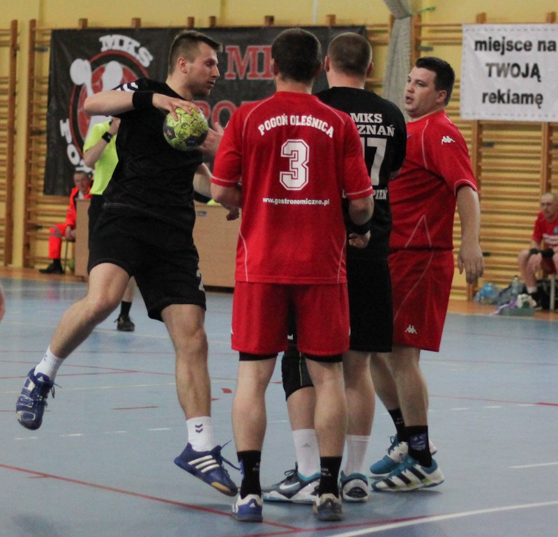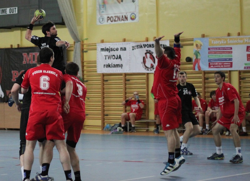 Podopieczni Domana Leitgebera awans do I ligi zapewnili sobie kilka kolejek wcześnie, a w sobotni wieczór w hali przy ul. Newtona walczyli o poprawienie imponującego bilansu spotkań. Początek spotkania był wyrównany, a po bramce Marka Kaczmarka w 11. minucie poznaniacy wyszli na prowadzenie, którego nie oddali do końca spotkania. Ostatecznie MKS pokonał zespół z Oleśnicy 31:28. Nagroda MVP spotkania trafiła w ręce Bartosza Przedpelskiego.