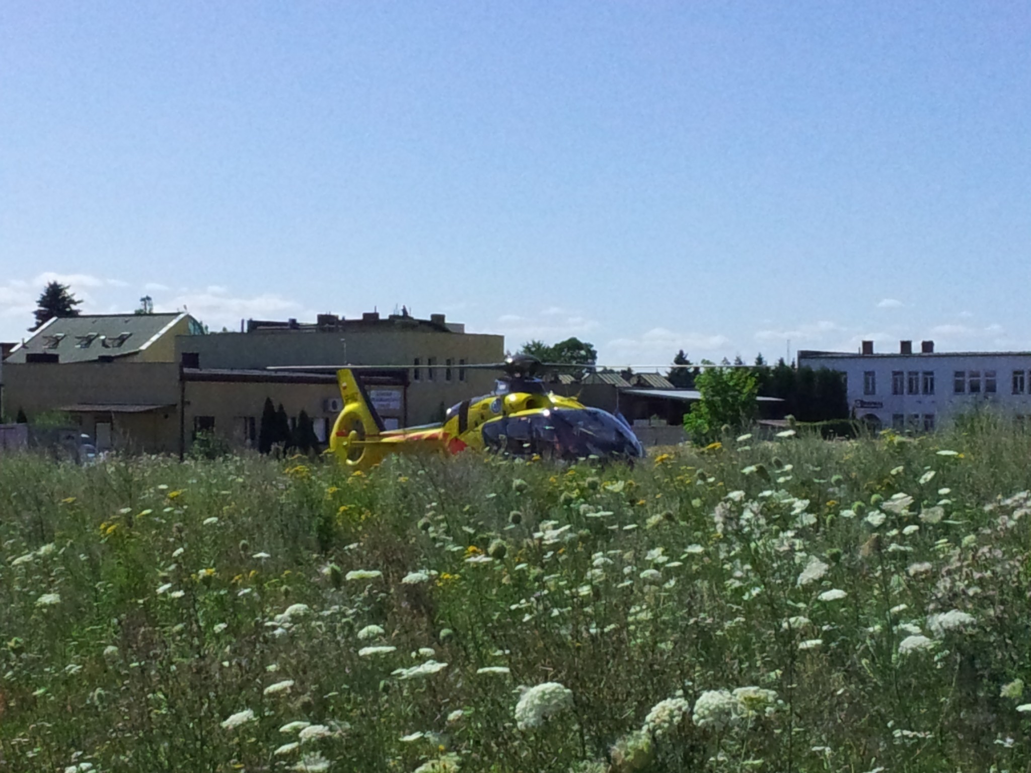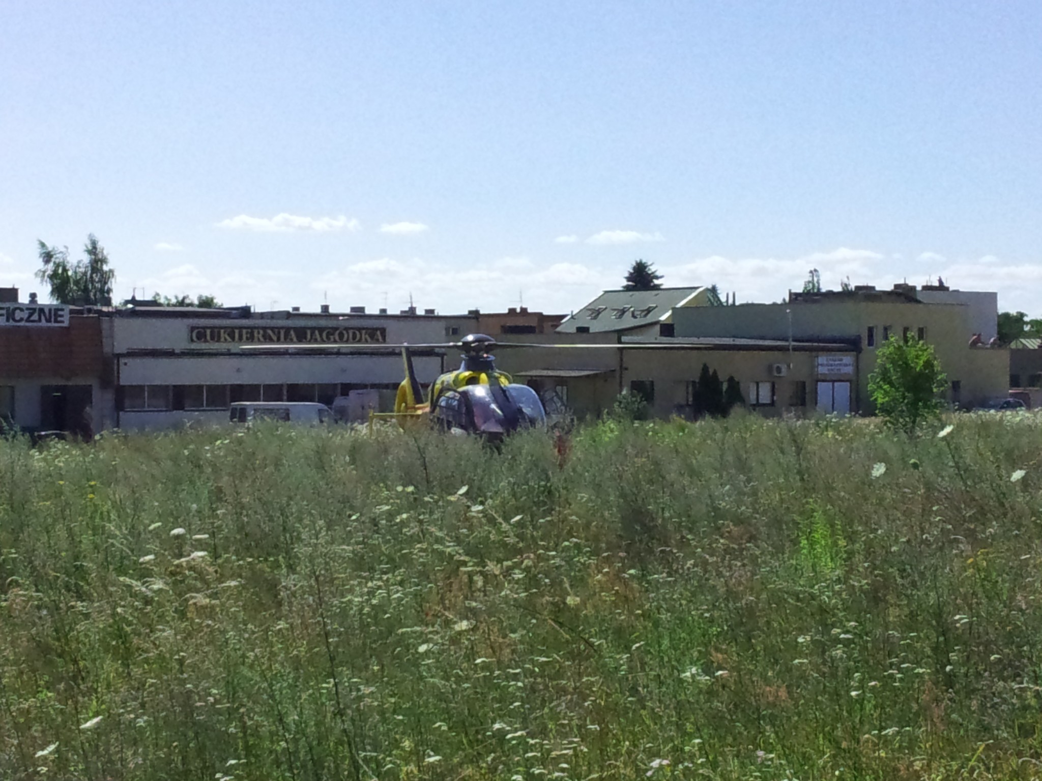 Wypadek na Obornickiej: akcja ratunkowa z udziałem helikoptera