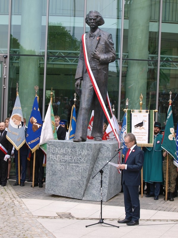 Pomnik Ignacego Paderewskiego powstał na skwerze im. Stefana Stuligrosza. W uroczystości wziął udział prezydent Polski Bronisław Komorowski - Bo gdzie jak gdzie, ale tu jest szczególne miejsce, w którym warto podkreślić związek wspaniałego muzyka, wspaniałego człowieka, wspaniałego polityka z Poznaniem - mówił prezydent Polski. We wszystkich przemówieniach nie brakowało nawiązań do udziału kompozytora w zmianie biegu historii Polski. Jednej z najważniejszych jej rozdziałów został zmieniony właśnie w Poznaniu. Przyjazd Ignacego Paderewskiego stał się iskrą, która doprowadziła do wybuchu Powstania Wielkopolskiego - Jego przyjazd do Poznania stał się powodem gwałtownego wzmożenia nastrojów patriotycznych - przypomniał Marek Rezler, historyk.