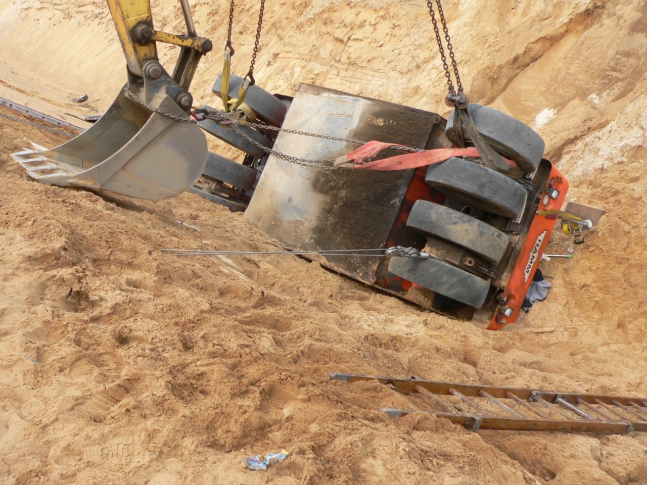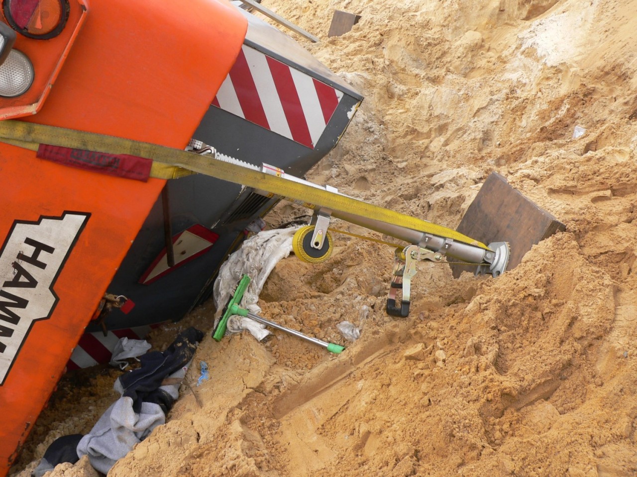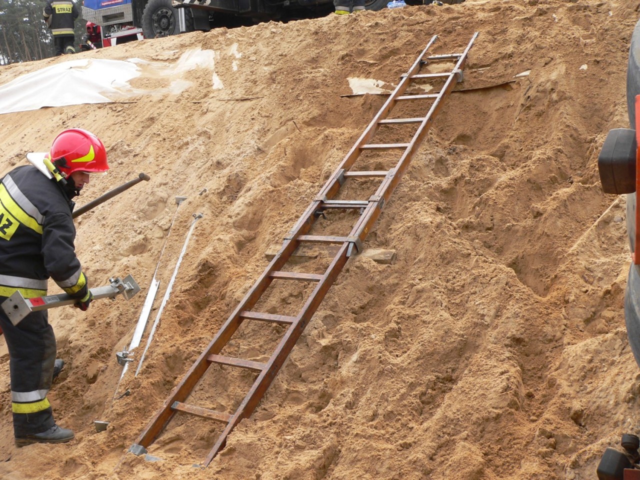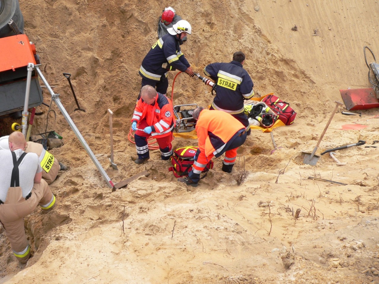 Na miejscu interweniowały cztery zastępy straży pożarnej -Po dojeździe i zabezpieczeniu miejsca zdarzenia, działania zastępów skupione zostały na stabilizacji pojazdu, aby wyeliminować jego dalsze obsunięcia, które mogłyby zagrażać życiu poszkodowanego. W W celu ewakuowania uwięzionego operatora niezbędne okazało się wycięcie zmiażdżonych elementów kabiny pojazdu i wykonanie odpowiedniego podkopu. Wykonane czynności umożliwiły ewakuacje poszkodowanego na deskę ortopedyczną i przetransportowanie do karetki pogotowia ratunkowego - dodaje Kurpisz.