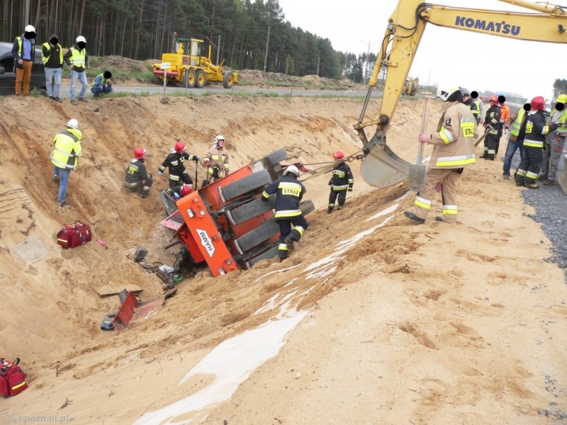 Do zdarzenia doszło kilka dni temu, ale dopiero w piątek o interwencji poinformowali leszczyńscy strażacy - Na wysokości miejscowości Rydzyna doszło do wypadku walca drogowego, który stoczył się podczas wykonywanych prac do rowu przebiegającego wzdłuż budowanej drogi. W wyniku zaistniałej sytuacji kierujący pojazdem został uwięziony wewnątrz kabiny - relacjonuje Szymon Kurpisz ze straży pożarnej.