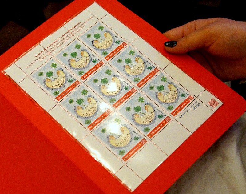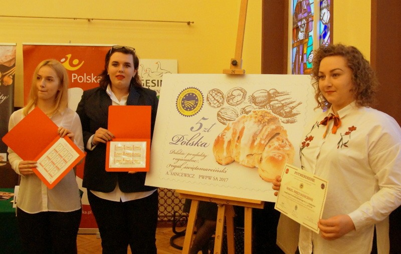 Tradycyjny przysmak doczekał się nawet własnego znaczka.Na znaczku jest rogal świętomarciński posypany orzechami i posmarowany lukrem. Znaczek, który kosztuje 5 zł, można kupić w placówkach pocztowych w Poznaniu a także przez internet - w sklepie online poczty. Rogal to bohater piątej edycji serii filatelistycznej "Polskie produkty regionalne", którą zapoczątkowaliśmy w 2013 roku - mówi Ewa Anna Zych, dyrektor Biura Filatelistyki Poczty Polskiej. Dotychczas zaprezentowaliśmy w niej takie atrakcje jak truskawka kaszubska, jabłko łąckie, ser koryciński i miód kurpiowski. Cieszę się, że możemy jako pocztowy operator narodowy przyczyniać się do rozpowszechniania wiedzy o polskich produktach. Dla Poczty Polskiej są one powodem do dumy - dodała.