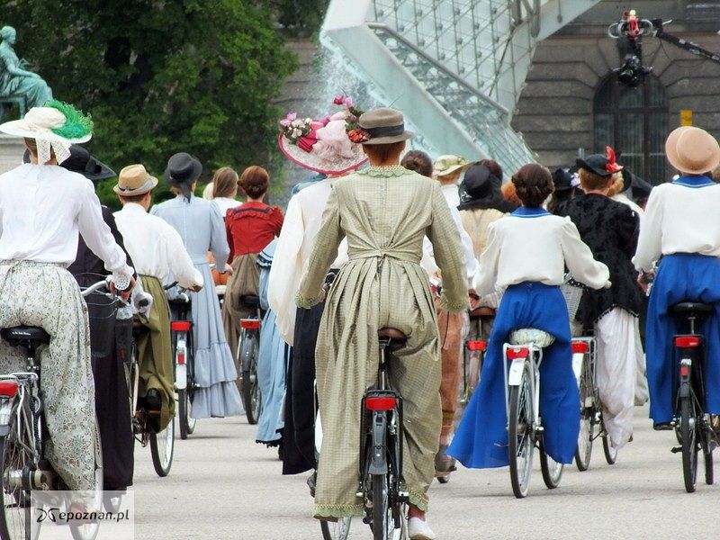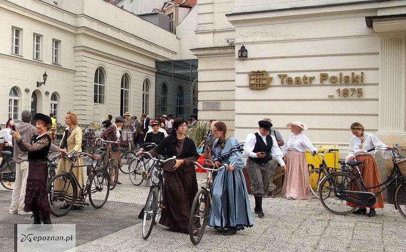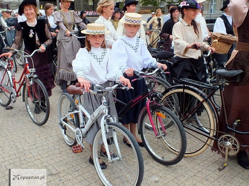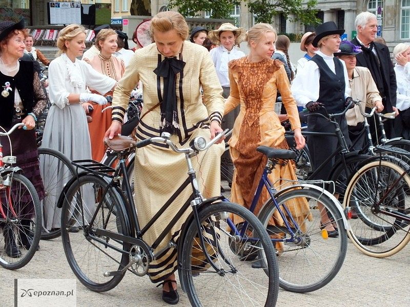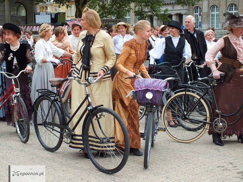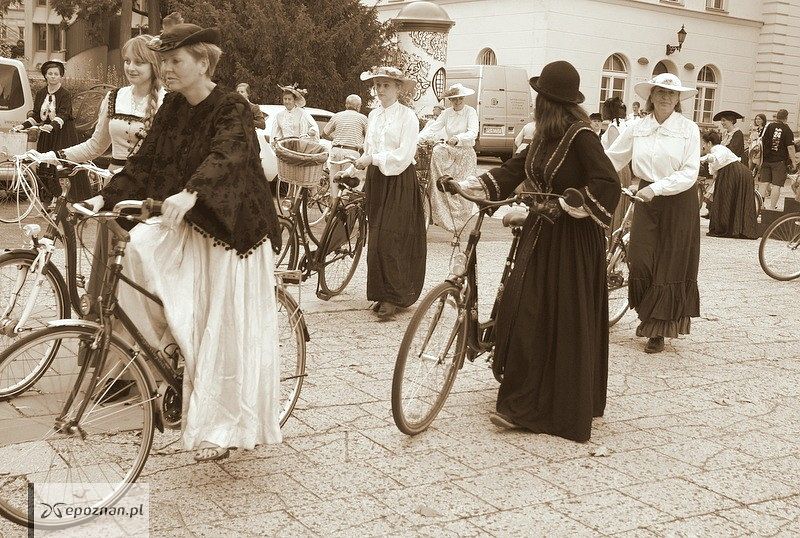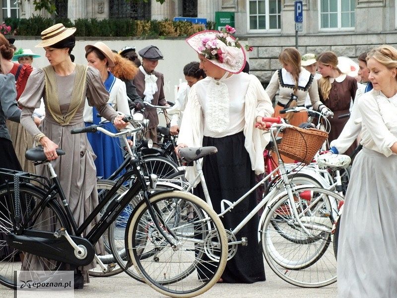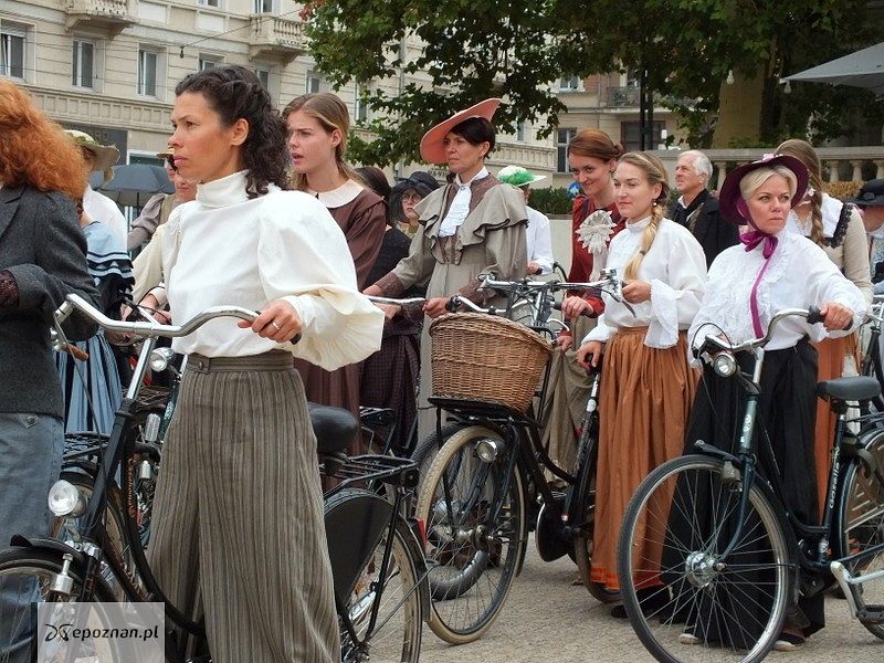 W rolę sufrażystek wcieliły się poznanianki, które na rowerach przejechały przez plac Wolności.