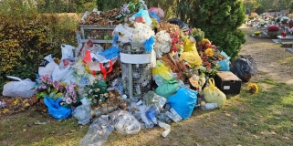 Przepełnione kosze na cmentarzu na Junikowie. "Jest ich tutaj wiele w takim stanie"
