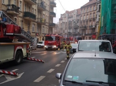Szamarzewskiego: mieszkańcy wyczuli zapach gazu na klatce schodowej. Pięć wozów strażackich przed budynkiem