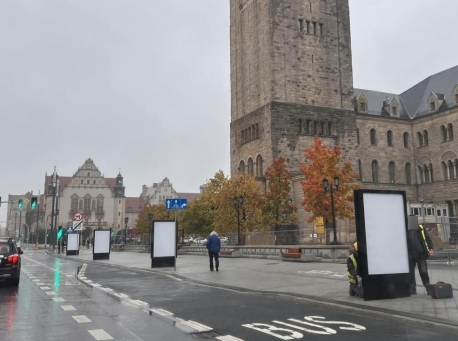 Znowu głośno o citylightach z ul. Święty Marcin. Poodpadały płytki. "Wintydż"