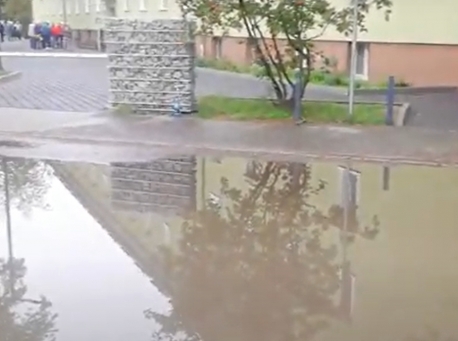 "Luksusowy" płatny parking stoi w wodzie po opadach