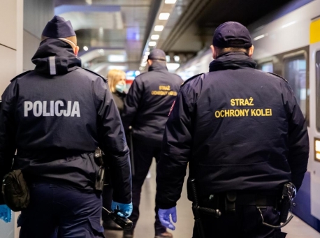 Policjanci i funkcjonariusze SOK sprawdzali, czy pasażerowie pociągu mają maseczki