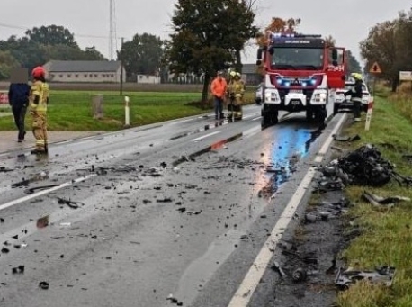 Poważny wypadek na "krajówce" w regionie. Silnik wypadł z auta i uderzył w inny pojazd