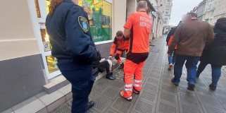Wielka: młoda kobieta straciła przytomność i upadła na chodnik. Strażnicy udzielali jej pomocy