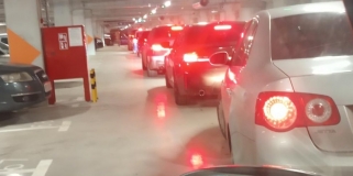 Tłumy i chaos na nowym parkingu podziemnym MTP. Kierowcy w niedzielę opuszczali go kilkadziesiąt minut