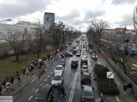 Stał pół godziny w zakorkowanej obwodnicy Poznania . "Czy droga rowerowa jest ważniejsza od zatkanego miasta?"