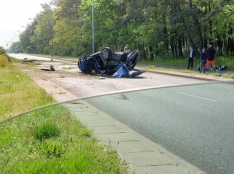 Bukowska: "koszmarny wypadek". W wyniku zderzenia jeden samochód dachował. Spore utrudnienia