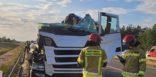 Zderzenie trzech pojazdów ciężarowych. Trzy osoby ranne. Droga zamknięta, policja wprowadziła objazdy