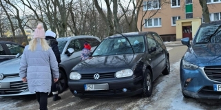 Zastawił autem wejście na chodnik, stoi od kilku dni. Mieszkańcy nakleili "karne k**asy"