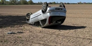 Wypadek w powiecie poznańskim. Samochód dachował, jedna osoba trafiła do szpitala