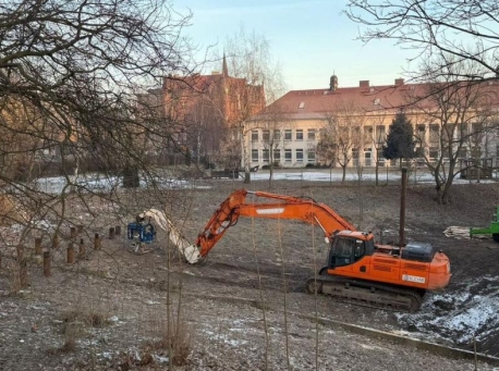 Mimo mrozów praca wre. Wielkopolskie miasto szykuje nową przestrzeń m.in. z wyniesionymi pomostami na palach